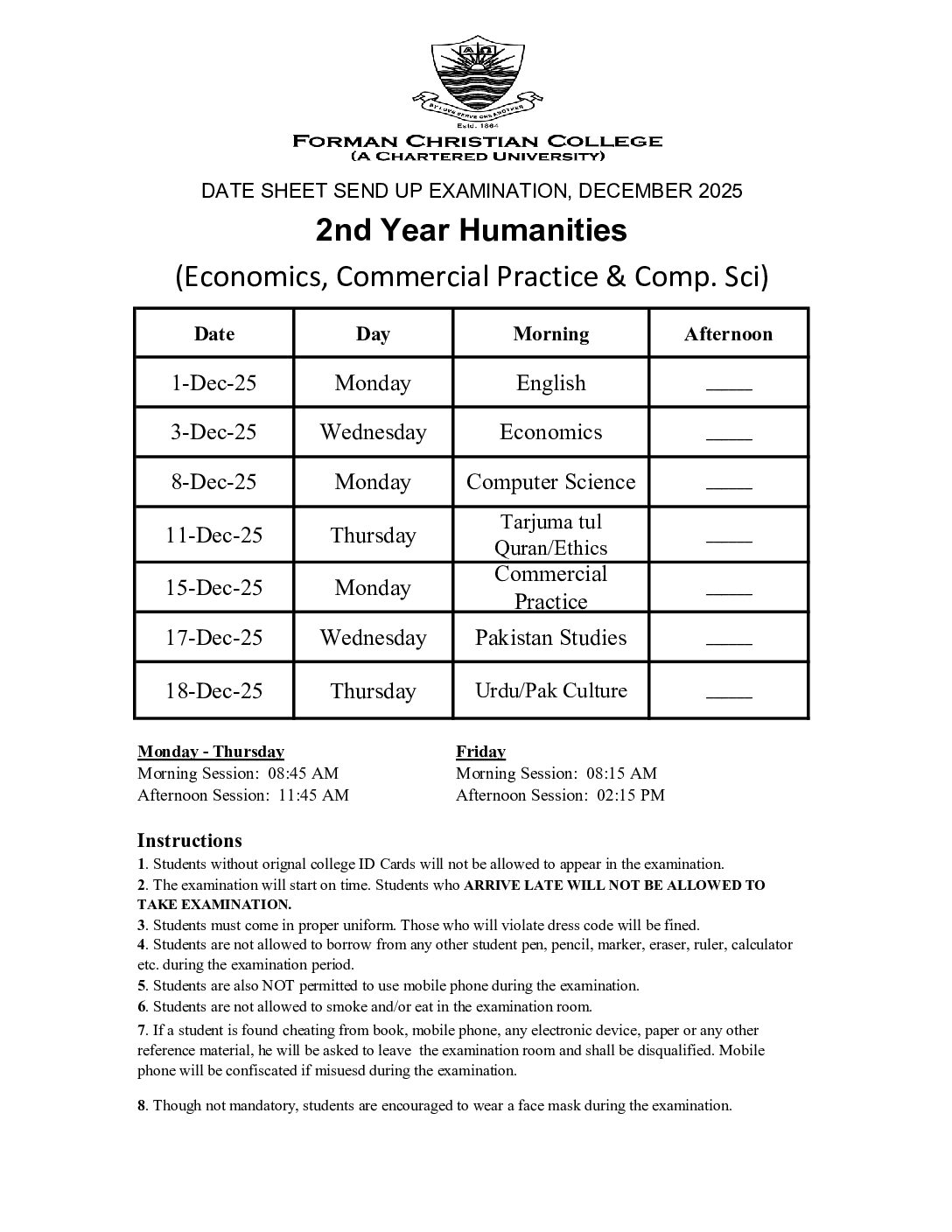 14. 2nd Year Humanities (Economics, Commercial Practice & Comp. Sci) - Forman Christian College