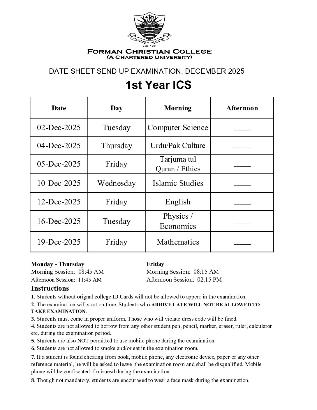 3. 1st Year ICS - Forman Christian College