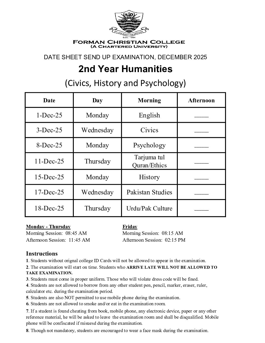 5. 2nd Year Humanities (Civics, History and Psychology) - Forman Christian College