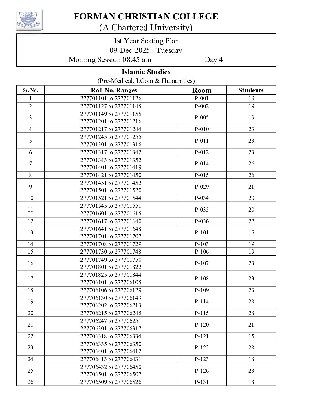 Seating Plans for Intermediate Send-Up (First Year and Second Year) Examinations December 2025